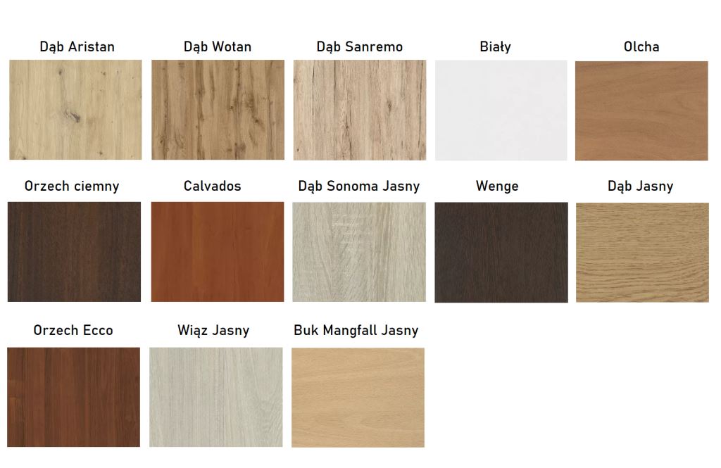 - na dole i na górze wykończenie z płyty meblowej o grubości 18 mm dostępnej w 13 różnych kolorach