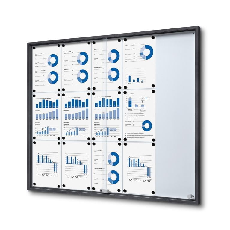 Jeśli potrzebujesz gabloty doskonałej w ciągach komunikacyjnych, to gablota z drzwiami przesuwanymi Premium jest idealnym rozwiązaniem. Jej solidna konstrukcja oraz elegancki wygląd sprawiają, że doskonale sprawdza się w miejscach o dużym natężeniu ruchu. Niezależnie od tego, czy chodzi o biura, placówki edukacyjne, instytucje kulturalne czy przestrzenie komercyjne, gablota Premium będzie doskonałym narzędziem do prezentacji informacji.